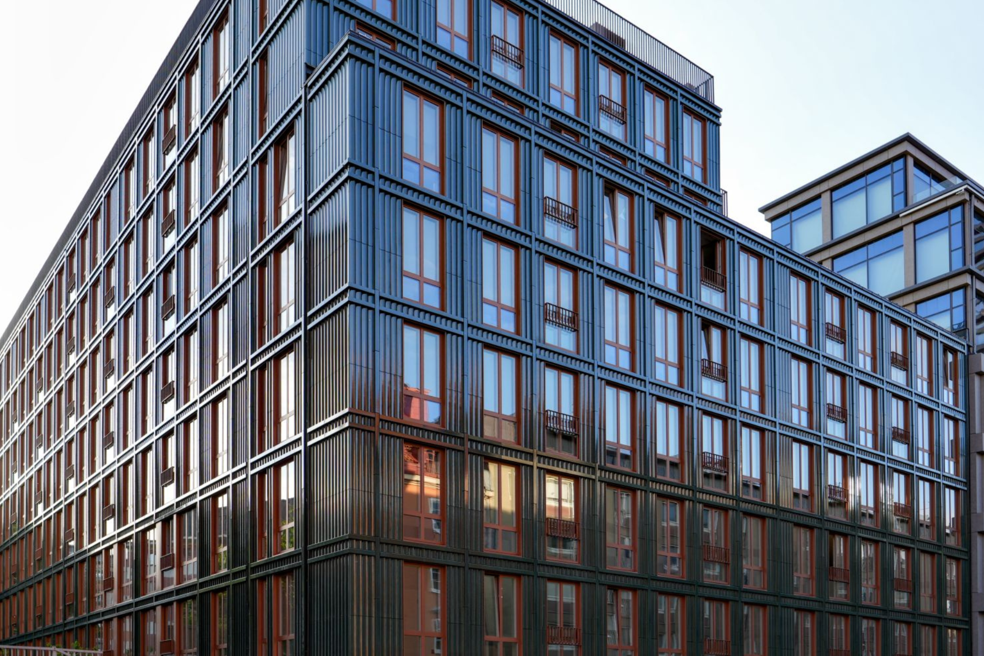 Här har vi monterat 6000m2 fasad av skärmtegel och levererat samtliga fönsterbänkar i Jura kalksten.